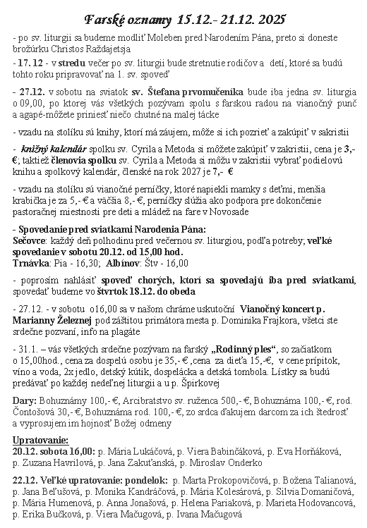 | Kamil Ščerba uploaded a new document, 15.12..png, in Gréckokatolícka farnosť Nanebovstúpenia Pána Vojčice. |