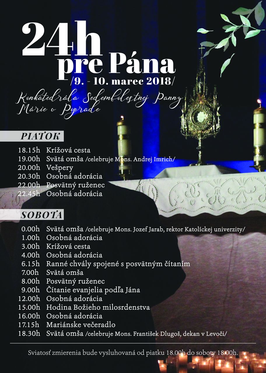 Na výzvu svätého otca Františka sa aj v našej diecéze uskutoční tzv. 24 hodín pre Pána, a to v Konkatedrále Sedembolestnej Panny Márie v Poprade /9.-10.3.2018/
