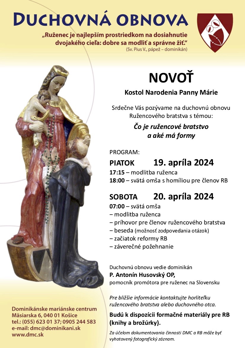 Vo farníku 10/2024 a 11/2024 ste sa už mohli dočítať o plánovanej duchovnej obnove vo farnosti so špeciálnym zameraním na ružencové bratstvá.