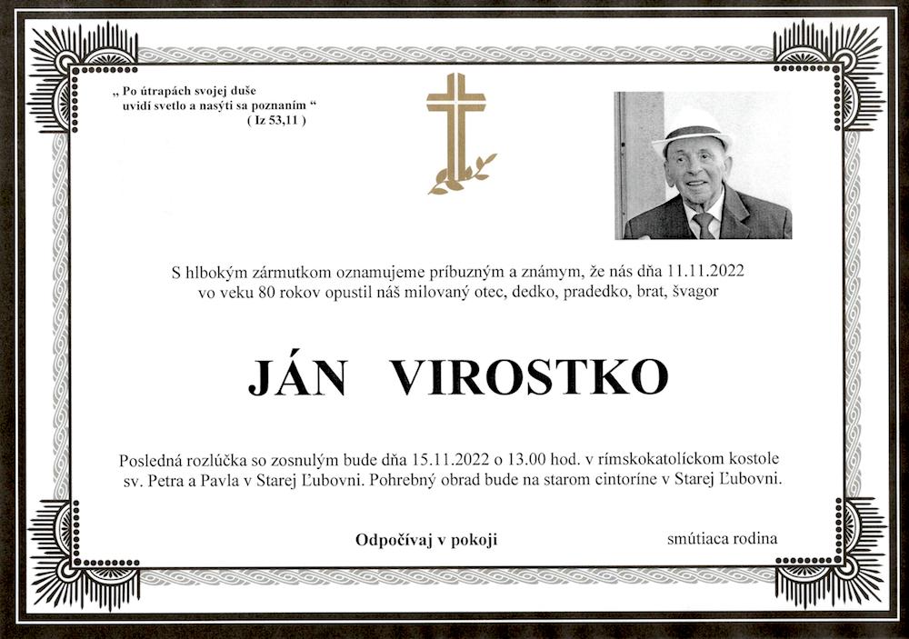 Pohrebná svätá omša bude v utorok 15. novembra 2022 o 13.00 v Kostole sv. Petra a Pavla